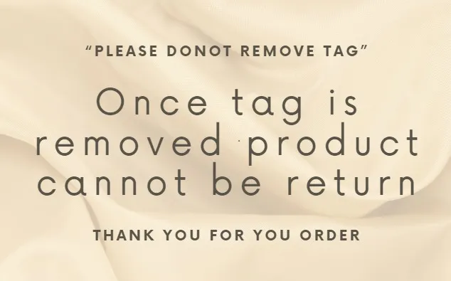 ONCE TAG IS REMOVED PRODUCT CANNOT BE RETURN